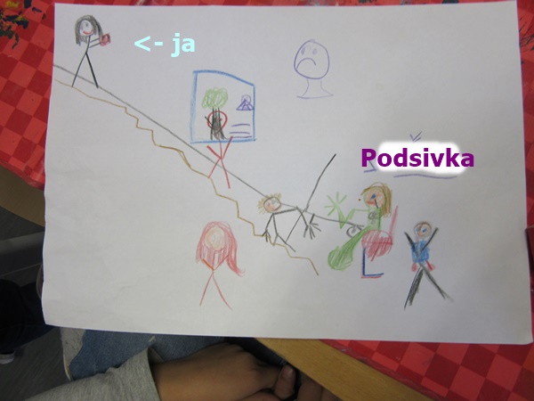 Hore v triede sa sama rozhodla svoju príhodu nakresliť.
