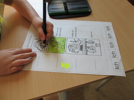 Keď som sa ku nemu od lavice ku lavici prepracovala a zbadala, čo stvára, overila som si pre istotu zadanie u jeho spolužiaka (z prvej skupiny). Spýtala som sa, či si nachvíľu smiem vypožičať jeho hárok a ukázala Šálkovi, ako má zadanie správne vyplniť.