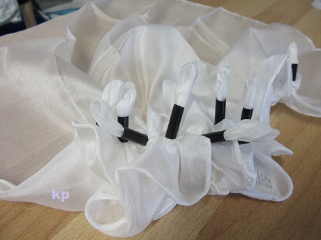 Takto predpripravené šatky som pokropila vodou. Lepšie povedané strčila pod kohútik, bo som nemala po ruke nič na kropenie (a nechala odkvapkať).