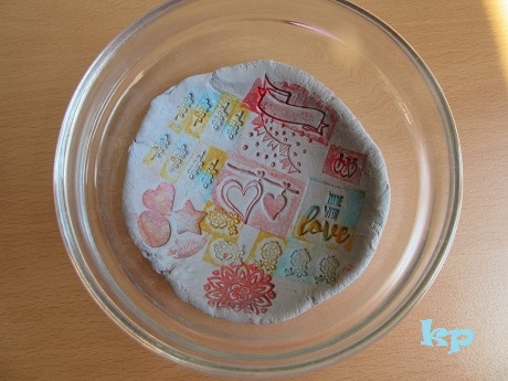 Nechala som sa inšpirovať internetom a na tohtoročný Deň matiek sme robili mištičky. Z modelovacej hmoty, ktorá tvrdne na vzduchu, sme si vyvaľkali kruhy. Podľa nálady si deti zvolili rôzne pečiatky a farby a tieto kruhy nimi opečiatkovali. Následne sme ich s citom vložili do sklenených misiek a jemne zatlačili ku dnu, čím sa modelovacia hmota prispôsobila jej zaoblenému tvaru. Na vzduchu sme sušili dva dni.