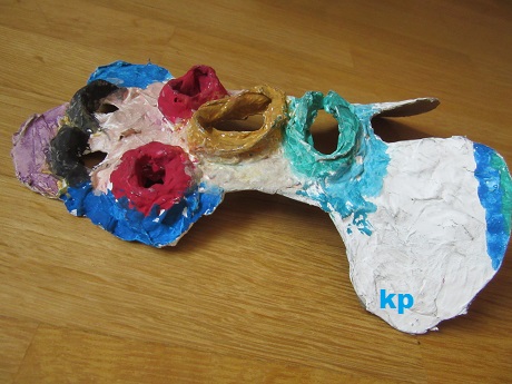 Potrebujete karton, lepidlo, novinovy papier a farby.